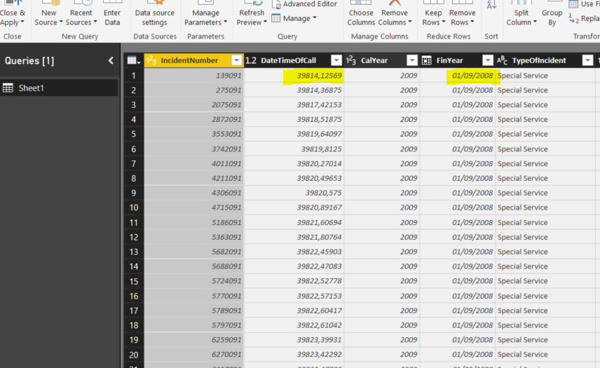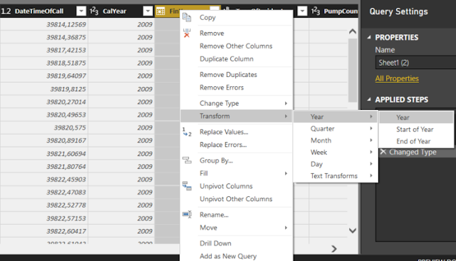 The format of the "DateTimeofCall" field also doesn't seem sufficient. This time we opt for the "Change Type" option from the same menu however we convert it to include a decimal point.