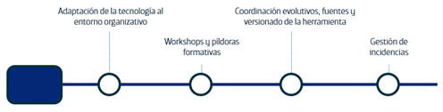 - Work together with the supplier in adapting its technology to our organisation's environment. In this way, all the functional and technical needs previously mentioned will be reflected in the operation of the tool.