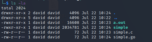 A small sample, two basic programs, two "Hello World" in C and Go. Let's look at their sizes: