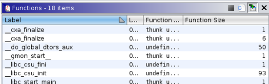 Now, we will look at the number of functions (symbols) carried by each of the binaries produced:
