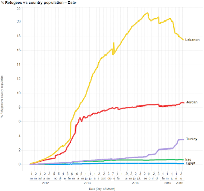 To give yourself an idea of the magnitude of the impact of the Syrian War in terms of displaced people, we recommend that you look into the UNHCR data portal.
