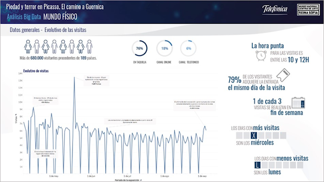 The exposition titled "Pity and Terror: Picasso's Path to Guernica" has been open in the Reina Sofia Museum for the last five months, coinciding with the 80th anniversary of Guernica's creation by Pablo Ruiz Picasso in 1937, and the 25th anniversary of this painting's arrival in Madrid. Normally when we buy an entry ticket for a museum or exposition, we will be asked where we come from, if it is our first visit or our reason for visiting. All this is done in order to produce internal statistics and to help the museum to understand the atendees. However, the Reina Sofia Museum in Madrid wanted to go one step further and has become the first museum in Spain to carry out a Big Data study which can be used as a basis for undertaking a more comprehensive analysis.