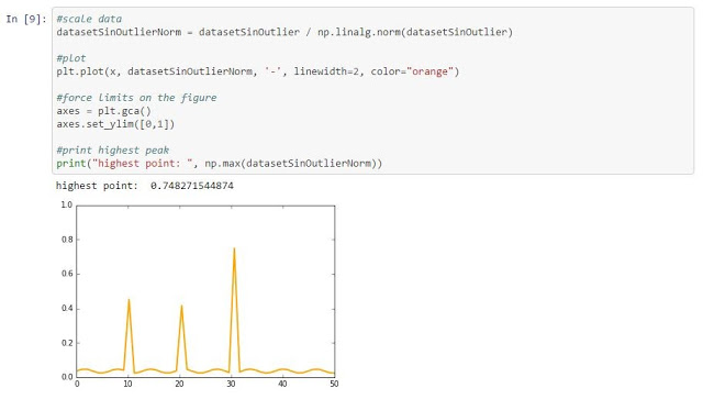 Next try. OK, scaling in a range didn’t work for a noisy flat signal, but what about standardizing the signal? Each feature would be normalized by: