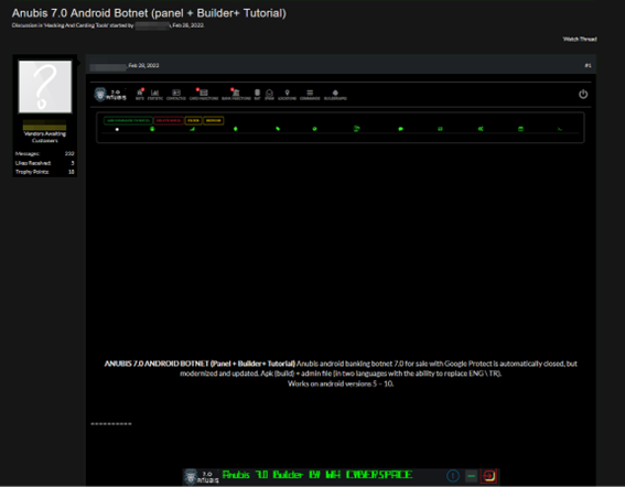 It is not only computers that are affected, mobile devices are also targeted by BotMasters. For example, on a well-known Dark Web forum, a botnet is offered for the Android operating system, which is one of the most widely used operating systems worldwide.: