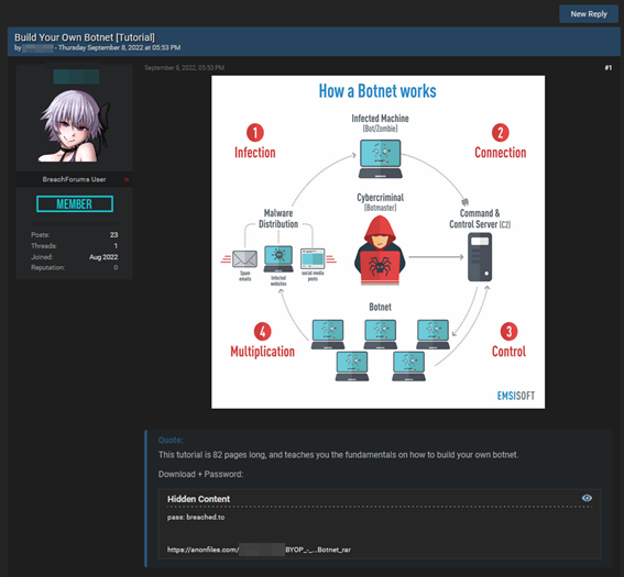 As another curious fact, and following the saying “if you want something well done, do it yourself”, tutorials are offered for sale, and sometimes for free, to learn how to set up your own botnet.