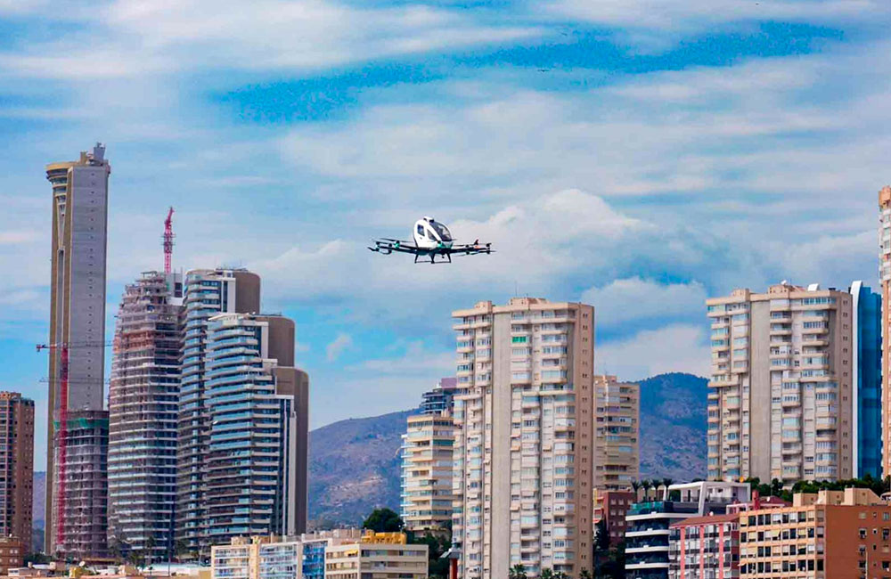 This week, the first air taxi flight in Europe took place in Benidorm. At Telefónica Tech, we provided the EH216-S air taxi from EHang with our IoT connectivity capabilities. This ensured reliable communications, low latency, high data transmission capacity, and security thanks to the SIM cards' encryption.